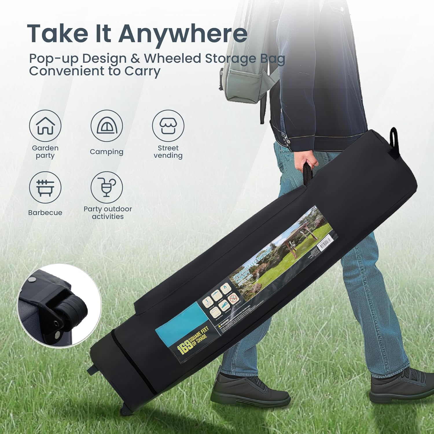 Boasting a spacious 100 square feet of shade, this canopy provides ample coverage to protect you and your guests from the sun’s harsh rays. The pop-up design allows for quick and easy setup, so you can spend less time assembling and more time relaxing.